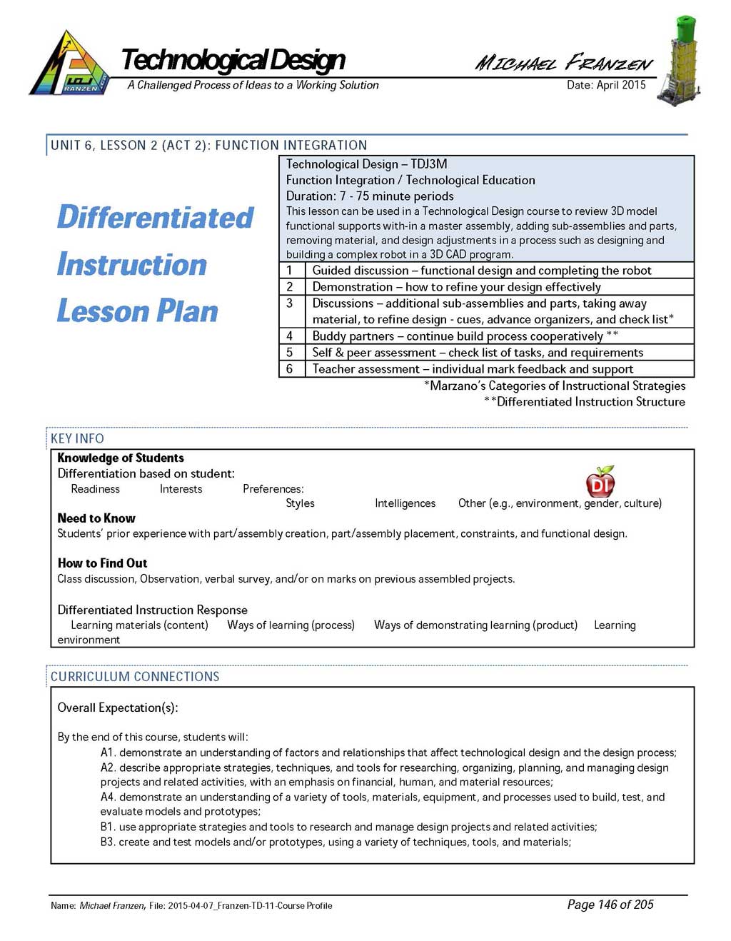 7. Differential Instruction Lesson Plan Sample from the Course Profile