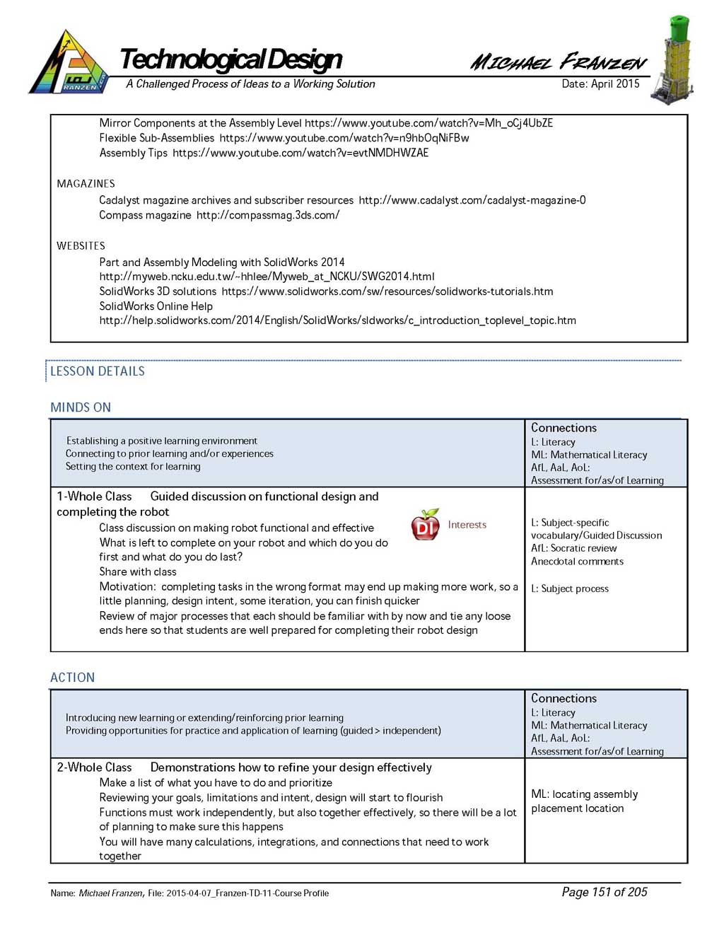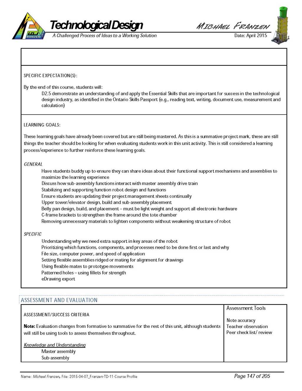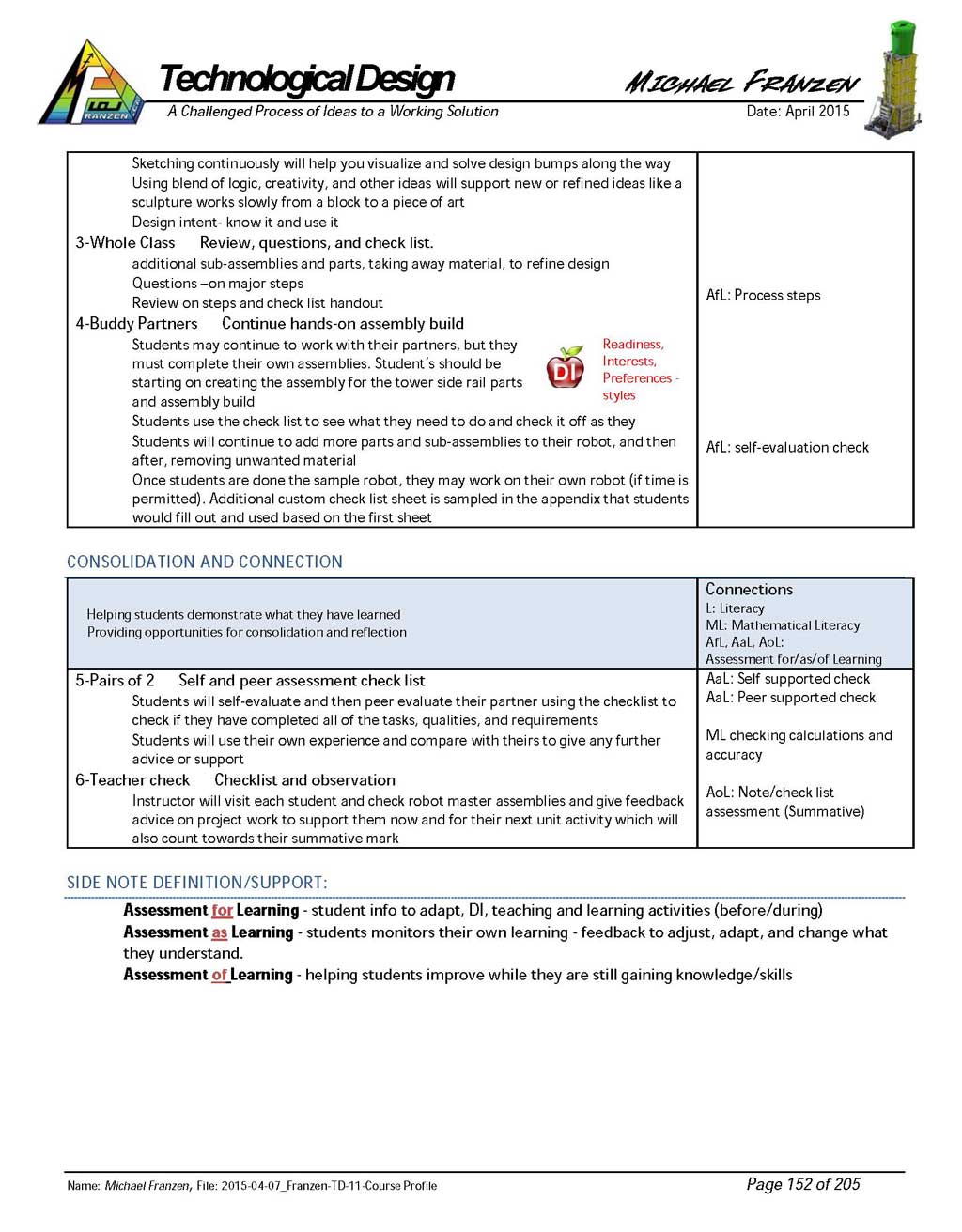 In addition to these excellent formatted lesson plans, I also updated the course profile template given, to better suite the flow of the profile and added additional sections and appendixes. The unit activity breakdowns are further detailed in the differentiated lesson plans. After setting up a template lesson plan and the understand of applying differential instruction strategies, combining the activities for the broad base of students with the ministry expectaions planning, it worked out well. I feel this is lesson plan format is a great way to plan and support students throughout the activity and further support me as a Technical Educator using this with class lessons.